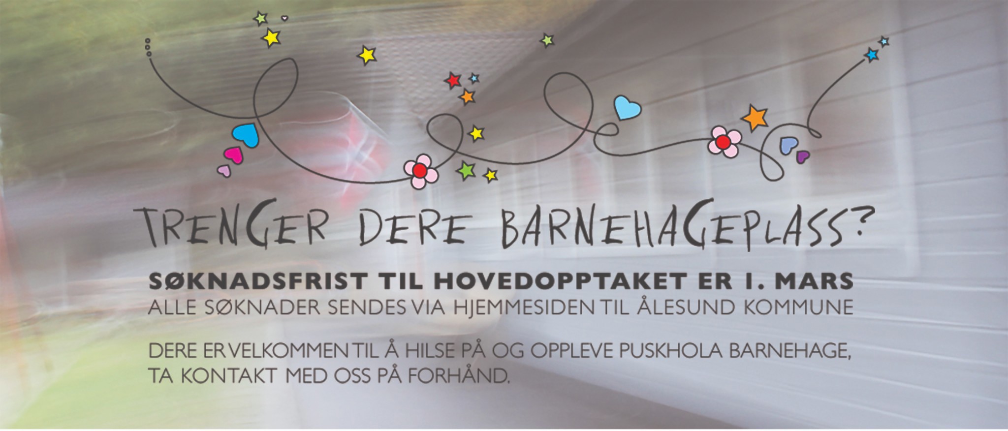 Søknad sendes til Ålesund kommune - opptak barnehage. Dersom dere ønsker plass her er det viktig at dere har oss på første plass.